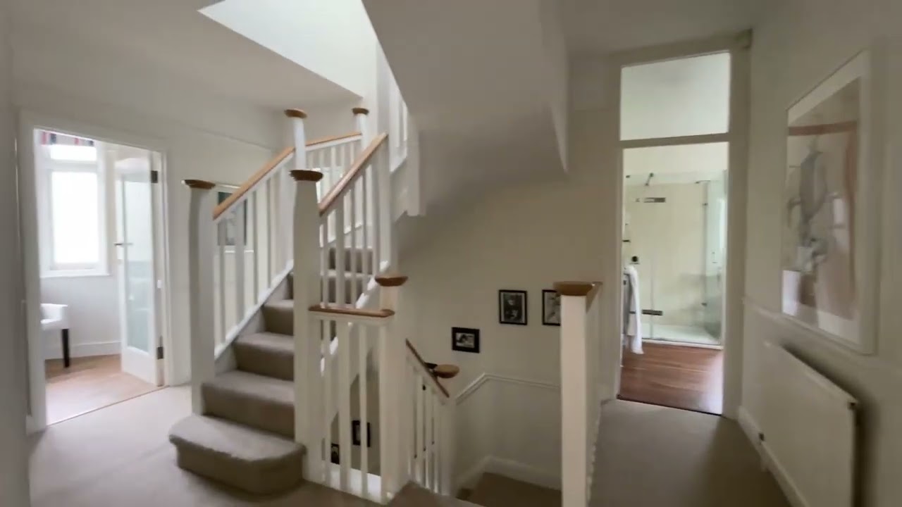 Turning staircase to spacious and bright first floor landing which has been redesigned to create and a feel of original continuity. Picture and dado rails. Bannisters and newel posts original to the first floor and made to match to the second floor. Radiator.